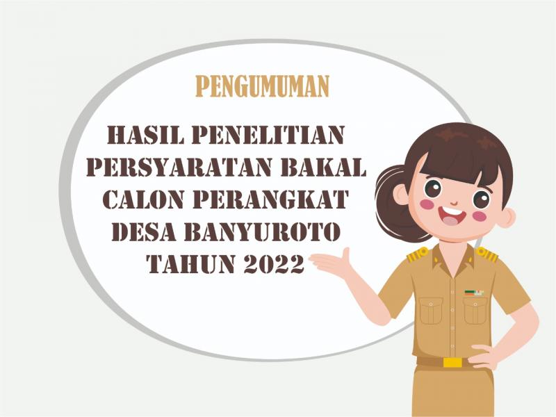 PENGUMUMAN HASIL PENELITIAN PERSYARATAN BAKAL CALON PERANGKAT DESA BANYUROTO TAHUN 2022