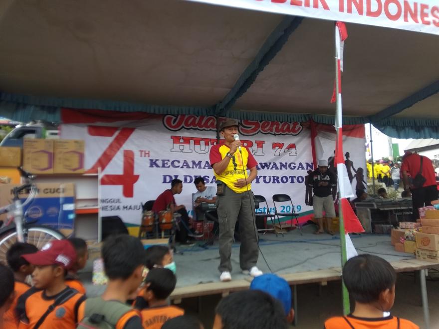 Banyuroto - Masyarakat Kecamatan Sawangan dalam rangka memeriahkan Hari Ulang Tahun ke-74 Republik Indonesia dengan berolahraga bersama di Lapangan Desa Banyuroto (08/08/2019). Turut hadir dalam kegiatan tersebut Bapak Drs. Wisnu Argo Budiono, MM. selaku Camat Sawangan, dan hadir pula Kapolsek Sawangan. Kegiatan ini rutin diselenggarakan setiap tahun oleh Panitia HUT RI Kecamatan Sawangan, namun untuk titik lokasi kegiatannya berpindah-pindah setiap tahunnya. Dan untuk tahun 2019 ini berlokasi di Desa Banyuroto. Peserta Kegiatan berasal dari berbagai lembaga dan instansi di wilayah Kecamatan Sawangan.